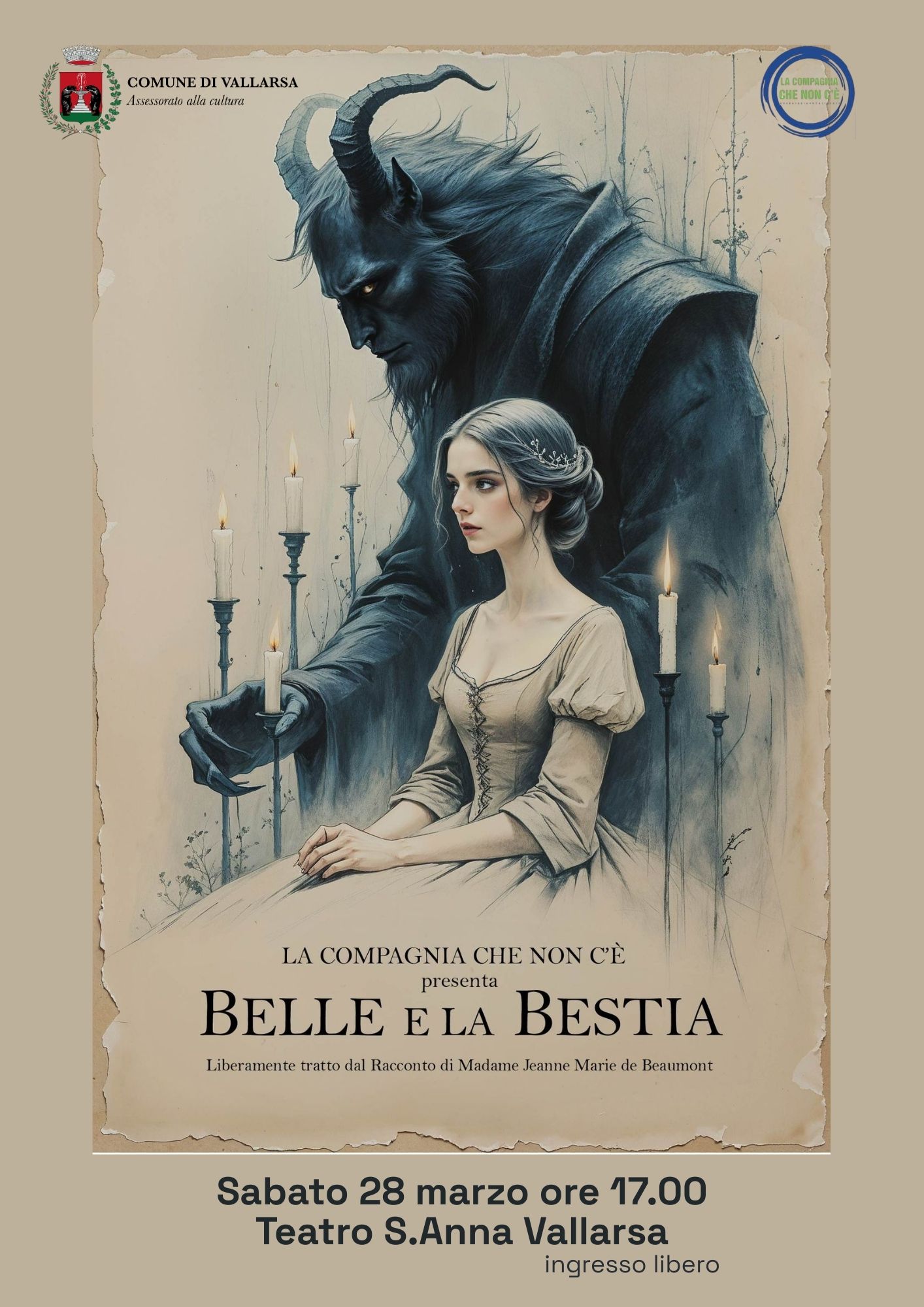 Sabato 28 marzo alle ore 17.00, al Teatro di Sant’Anna, andrà in scena Belle e la Bestia, spettacolo della Compagnia che non c’è, liberamente tratto dal celebre racconto di Madame Jeanne-Marie Leprince de Beaumont.