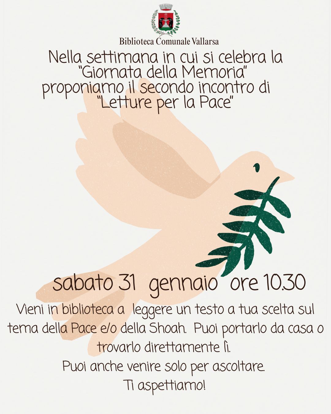 Vieni in biblioteca a leggere un testo a tua scelta sul tema della Pace e/o Shoah.